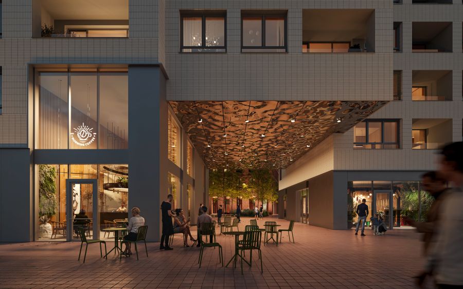 Součástí třetí etapy je také realizace open air pavilonu, který se stane místem pro setkávání rezidentů, obyvatel Modřan i dalších návštěvníků. Naváže tak na činnost komunitního prostoru Cukrkandl, kam lidé už roky přicházejí za koncerty, letním kinem a občerstvením. Mezi open air pavilonem a dochovaným komínem, ze kterého se stane veřejně přístupná rozhledna, vznikne ještě klidová zóna otevřená k Vltavě s uměleckým prvkem v podobě větrných kinetických soch. Na nejvyšším z nových objektů ve výšce 35 metrů nad náměstím doplní prostor pro setkání rezidentů také sdílená střešní zahrada s lehátky, venkovní kuchyní a zázemím s WC.
