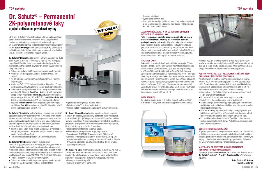 Toto výše uvedené portfolio permanentních laků umožňuje nekonečné možnosti a variaty při renovacích povrchů pružných povlakových krytin. Aby ovšem laky splňovaly veškeré svoje vlastnosti, musí být správně odborně aplikovány. Rozhodující je odborně dokonalá příprava povrchu, tj, základní čištění, odstranění všech chemicky rozpustných ošetřovacích nátěrů, zbytků čistících a dezinfekčních prostředků a také dokonale provedený mikrobrus povrchu. O této tématice se dočtete na jiném místě v časopise DOMO 6/2025.