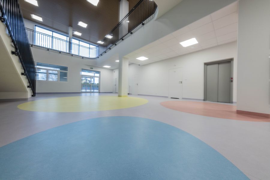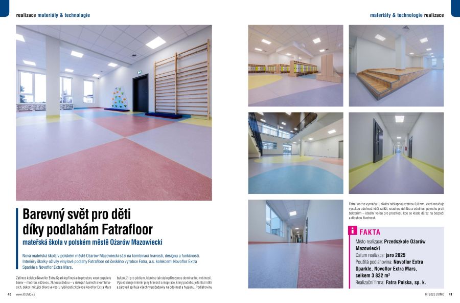 Nová mateřská škola v polském městě Ożarów Mazowiecki sází na kombinaci hravosti, designu a funkčnosti. Interiéry školky oživily vinylové podlahy Fatrafloor od českého výrobce Fatra, a.s. kolekcemi Novoflor Extra Sparkle a Novoflor Extra Mars.