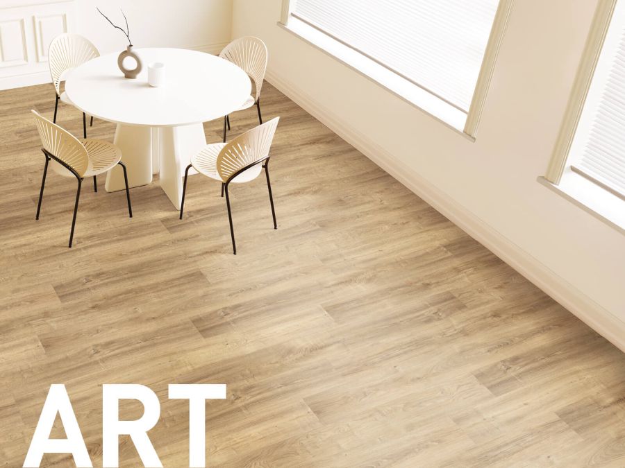 Řada Art přináší 8 dekorů s dřevěným charakterem ve formátu 1829 × 180 mm. Díky delším lamelám působí podlaha klidněji a opticky rozšiřuje prostor, což ocení zejména architekti u větších nebo vzdušných interiérů. Kolekce je vhodná jak do obytných místností, tak do reprezentativních či komerčních zón, kde se spojuje požadavek na estetiku a mechanickou odolnost.