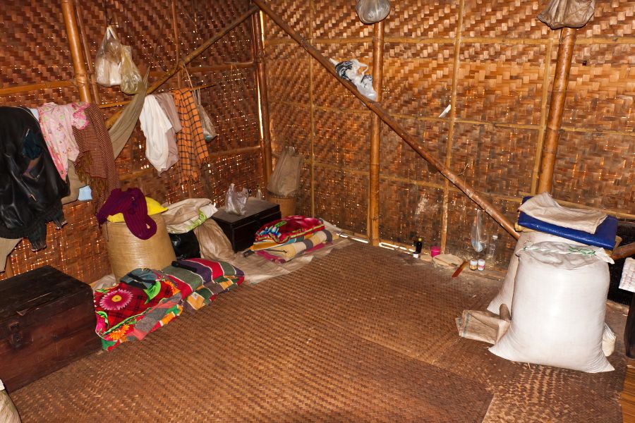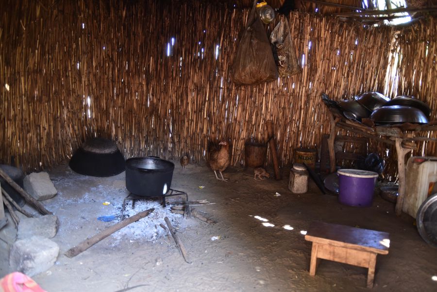Děti si hrají na podlaze s kamínky, kukuřičnými zrny nebo kousky dřeva. Podlaha je jejich hřištěm i učebnou. A večer, když se v místnosti ztiší ruch, rozprostírají se na ni rohože z trávy, které slouží jako postele.